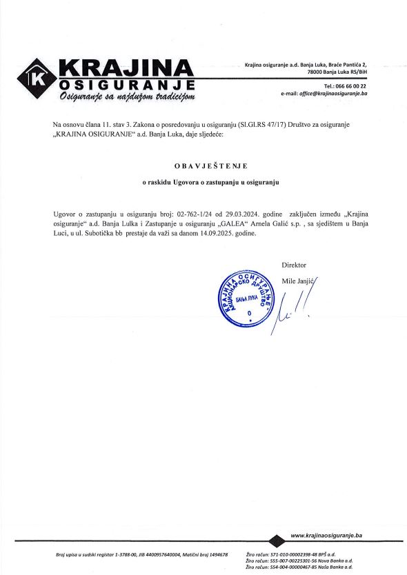 • Zastupanje u osiguranju „GALEA“, Arnela Galić, s.p. Banja Luka